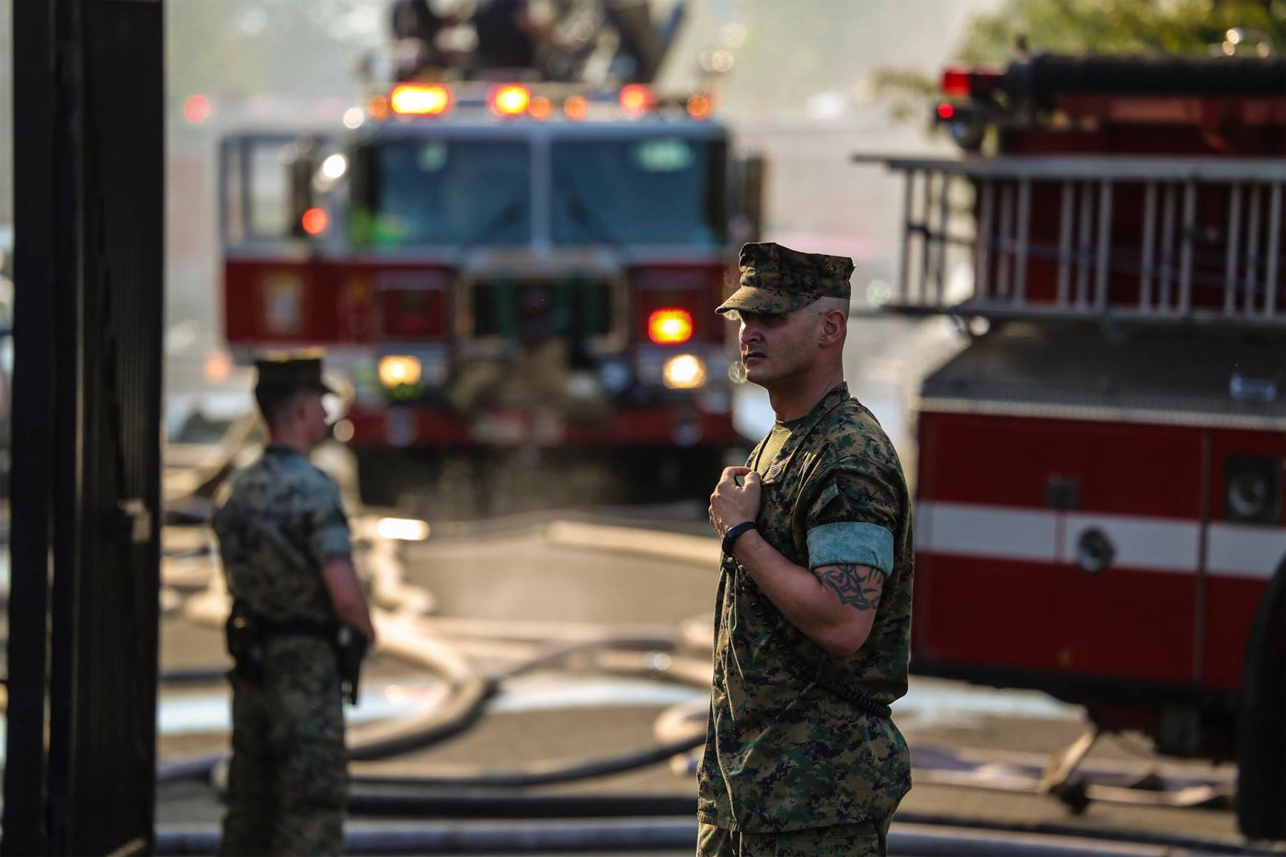 As of 8:30 Wednesday night, Jackson said Marines remained on scene to assist and to provide firefighters with any access they required at Marine Barracks Washington. In addition to the first volunteers, Jackson said the post ultimately sent over wheelchairs and other support equipment, as well as Navy corpsmen who assisted with health checks on fire victims.