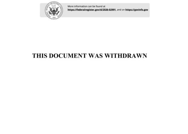 "An agency letter requesting withdrawal of this document was received after placement on public inspection," the Federal Register, without further reasoning, said in an editorial note besides the document labeled “withdrawn.”