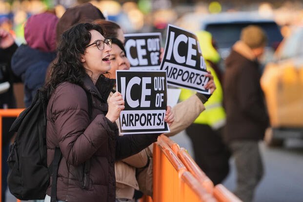 Demonstrators stood outside Cleveland Hopkins International Airport on Wednesday, protesting ICE agents’ presence, according to local FOX 8. Local police had urged travelers to arrive early due to longer-than-average TSA lines and traffic outside the facility.