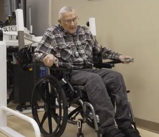 “I used to have back pain from sitting in this darn thing,” he said, referring to his wheelchair. “But with the exercise, I feel better. I feel like I accomplish something through exercise. I love it, and I’m going to stick with it as long as I can.”
