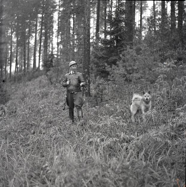 Simo Häyhä and his dog hunting in the Finnish woods in 1961. (Wikimedia Commons)