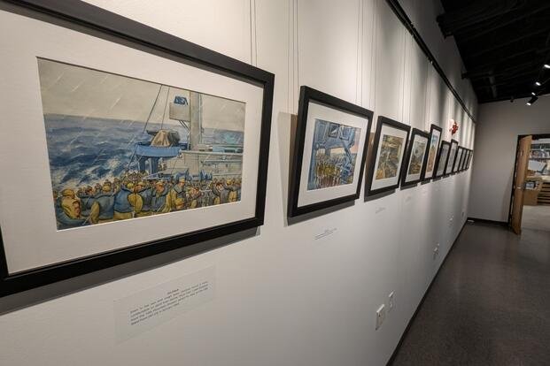 The 10th Mountain Division and Fort Drum Museum has a new art exhibit on display featuring the work of Arnold Roberts, who served with the division in Italy during World War II. (Photo by Mike Strasser, Fort Drum Garrison Public Affairs)