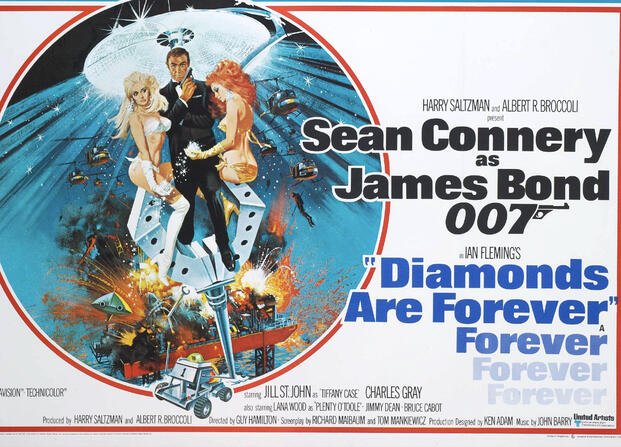 Sean Connery returned as 007 for the glossy, camp-leaning adventure Diamonds Are Forever (1971). Photo credit: United Artists / Eon Productions