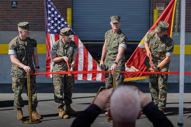 U.S. Marine Corps leaders participate in a ribbon cutting ceremony at the new Individual Issue Facility on Marine Corps Base Camp Lejeune, North Carolina, April 14, 2026. (U.S. Marine Corps photo by Lance Cpl. DeCrane)
