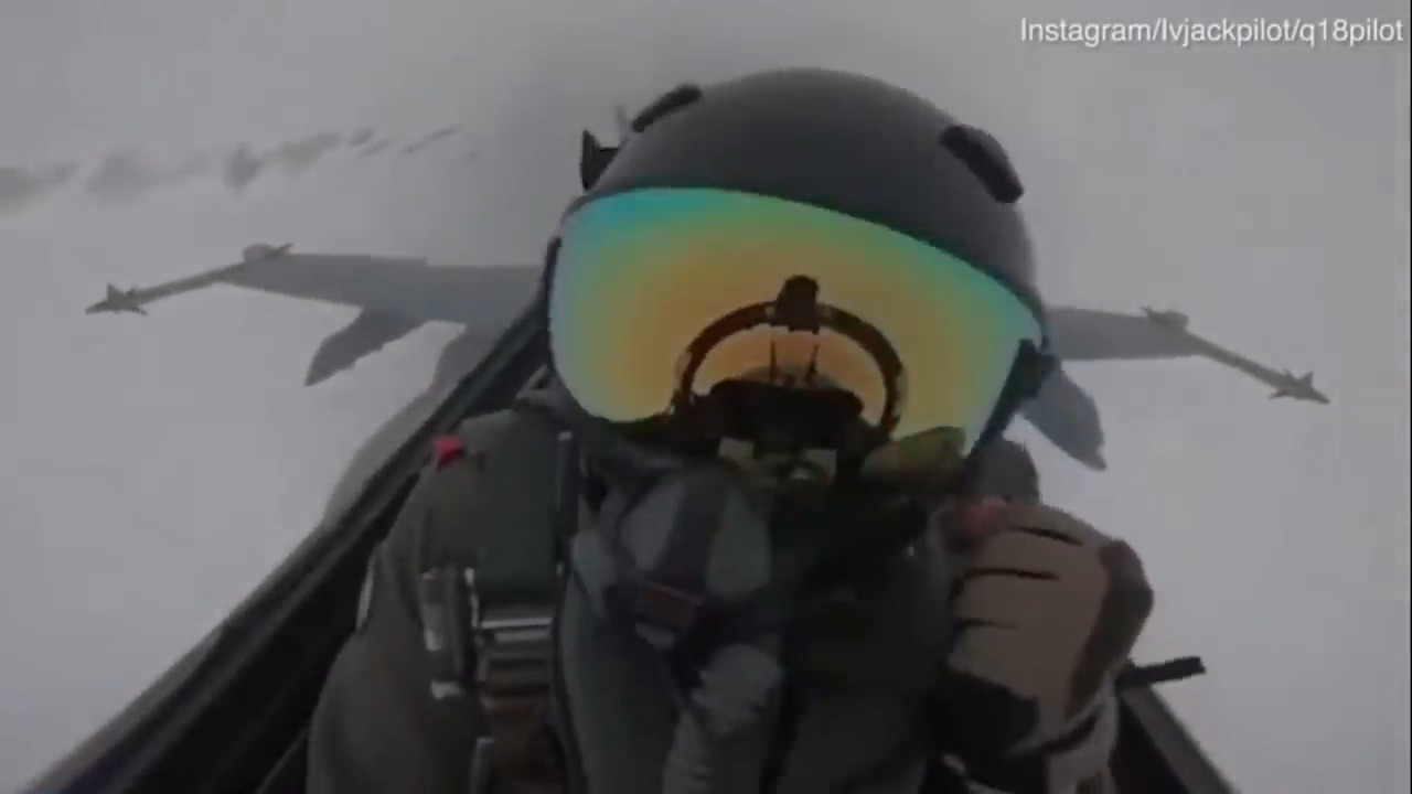 Watch the incredible moment lightening strikes the cockpit of a F-18 fighter jet.