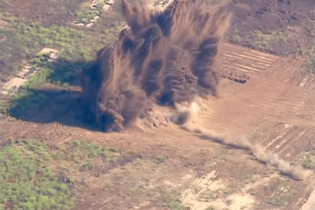 A massive shower of dirt was seen as crews blew up the ordnance.