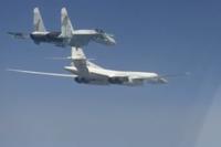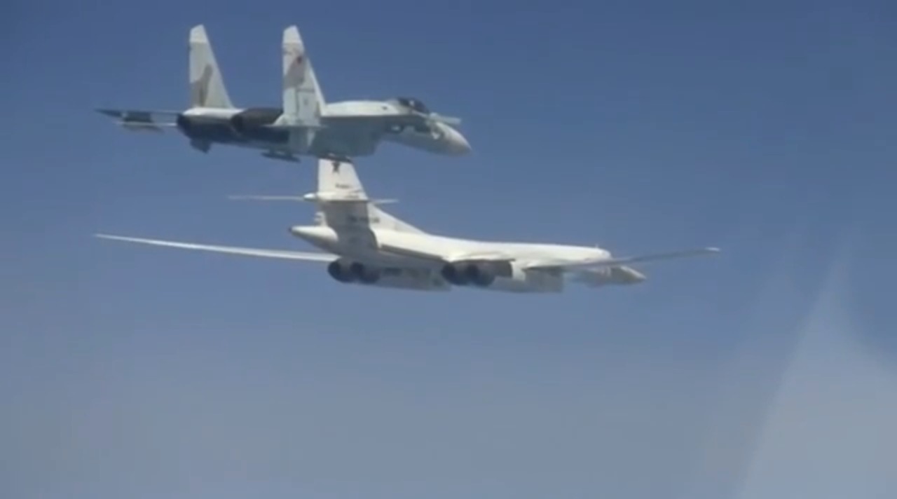 Tu-160 strategic bomber flies over the neutral waters of the Barents, Norway and North Seas.