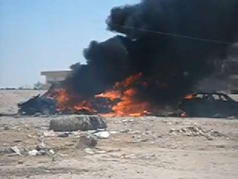 Confiscated insurgent vehicles become target practice.