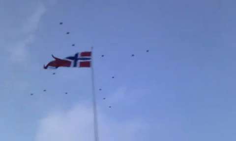 This is a Norwegian tradition from 1950. The Norwegian air force on operation "Christmas Star".