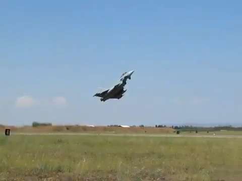 Eurofighter Typhoon (EF-2000) with very low afterburner takeoff.