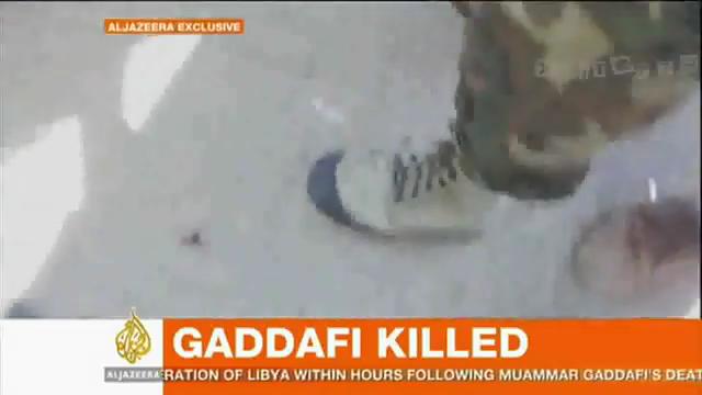 Al Jazeera, Sirte, Libya -- Muammar Gaddafi's dead body captured on a cell phone.