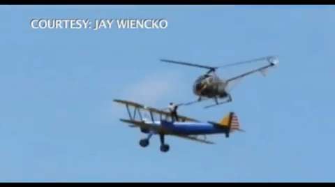 A Michigan wing walker who fell to his death after trying to grab a helicopter's skid while standing on the