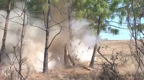 150g ANNM (Ammonium Nitrate - Nitromethane) w/ 5kg sand tamp vs tree.