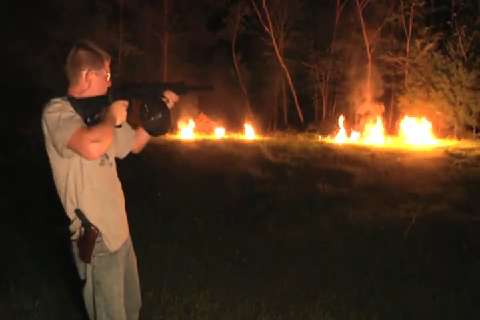 From a new web series called "Smarter Every Day". Using a Saiga 12, they demonstrate the difference between a detonation