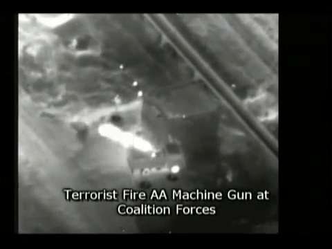 UAV records air strike on taliban who had been firing a heavy machine gun on a truck.