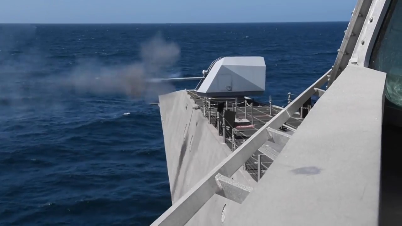 LCS USS Montgomery fires its MK 110 57mm gun!
