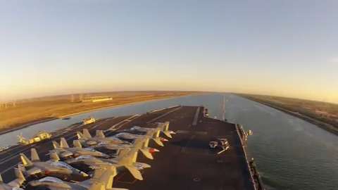The Nimitz-class aircraft carrier USS Theodore Roosevelt (CVN 71) transits through the Suez Canal. Theodore Roosevelt will conduct operations in