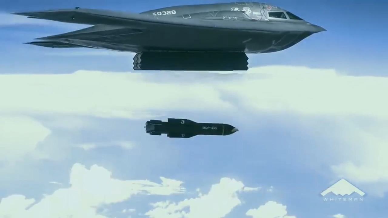 Whiteman Air Force base B-2 Pump Up Video shows B-2 dropping two GBU-57 Massive Ordnance Penetrators.