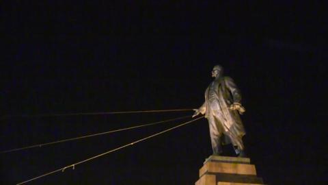 28 September 2014 (BBC) - Ukraine nationalists have torn down a statue of Lenin in the centre of Ukraine's second-largest