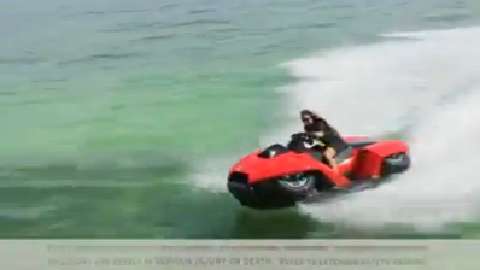 The Quadski reaches speeds of 45 mph (72 km/h) on both water and land and transitions between them in seconds