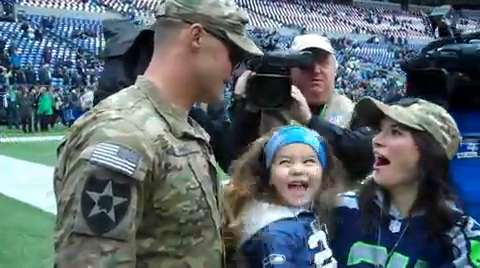 United States Army Sgt. Zach Ames,had been on a one-year deployment to Afghanistan, surprises his wife, Bri Ames, and their