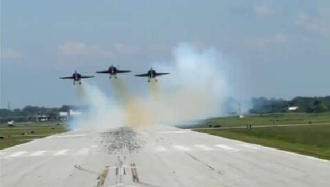Pretty spectacular view of the Blue Angels taking off from the end of the runway.