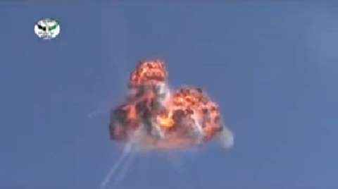Syrian rebels shoot down a Syrian Army helicopter over the capital causing it to explode in midair.