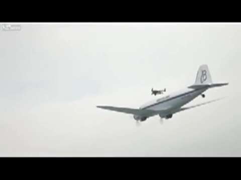 Pretty cool jet powered wing suit is used by "jetman" to fly next to a DC-3 airplane. Camera views from