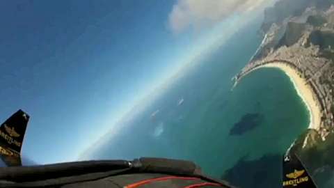 Spectacular scenes as "Jetman" Yves Rossy soars over Rio de Janeiro's iconic skyline, including past the famous Christ the Redeemer