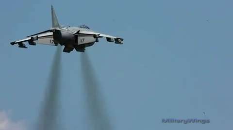 US Marine Corps AV-8B Harrier II vertical take-off (VTO) demonstration.
