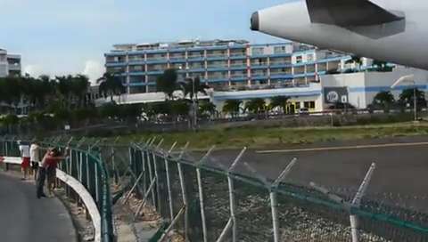 A girl gets a little too close to a plane taking off at Saint Martin airport and literally gets blown