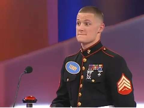 One weird Family Feud question, one SMART Marine. He may be a trained killer, but he knows how to keep