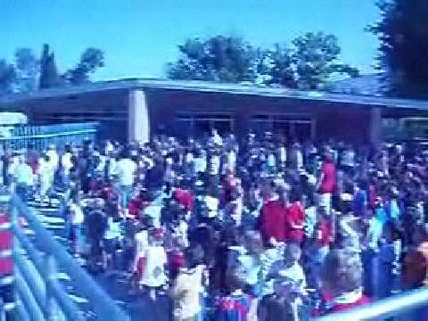 At a flag ceremony, 740 elementary students recite the Pledge of Alligence every Friday morning at the Flag Pole.