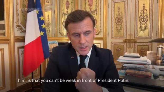 French President Emmanuel Macron has said he intends to tell U.S. President Donald Trump, whom he’ll meet at the White House on Monday, not to "be weak" in the face of Russian President Vladimir Putin. (Feb. 21) AP