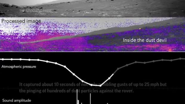 A NASA rover on Mars by chance had its microphone on when a whirling tower of red dust passed overhead last year and caught the sound. (Dec 13) AP