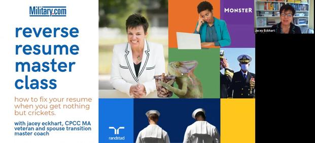 Are you submitting your resume and STILL not getting the interview? Consider it a sign. There is nothing wrong with you. There is something wrong with your resume. Luckily, resumes are so easy to fix with our Reverse Resume technique. In this 60-minute Master Class on Zoom, Transition Career Coach Jacey Eckhart will teach you the mind-blowing resume trick that helps you pass the ATS and get into the hands of a hiring manager.