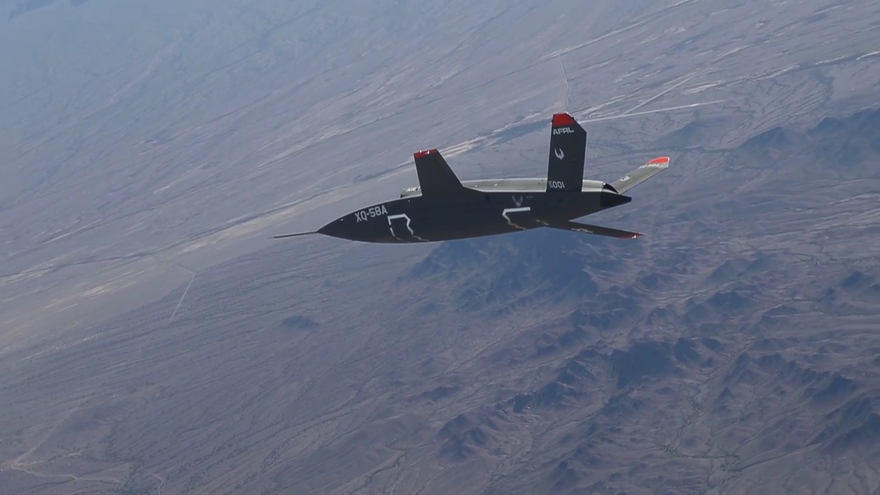 The XQ-58A Valkyrie demonstrator, a long-range, high subsonic unmanned air vehicle, completed its inaugural flight March 5, 2019 at Yuma