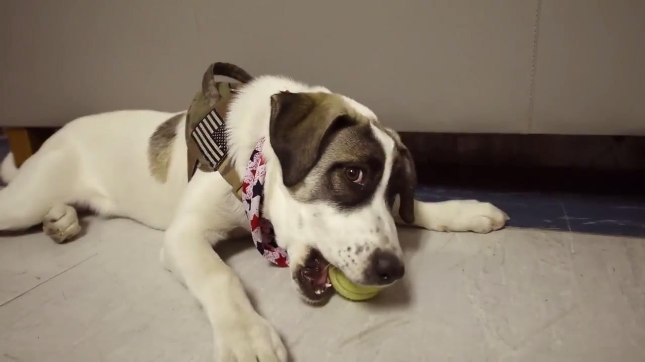 Rogue, Bagram's morale dog, provides stress relief for military members across Afghanistan.