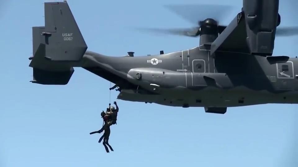 U.S. Air Force 8th Special Operations Squadron conducts water hoist training with a CV-22 Osprey.