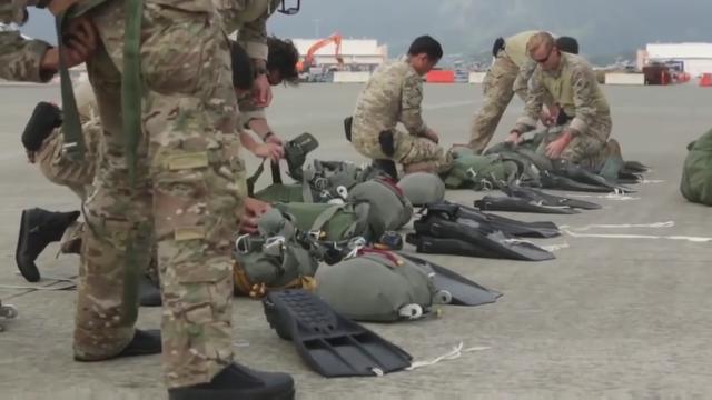 U.S. Navy Seal Team 1 jump from an MC-130J Super Hercules into water with no helmet. Filmed on July 26