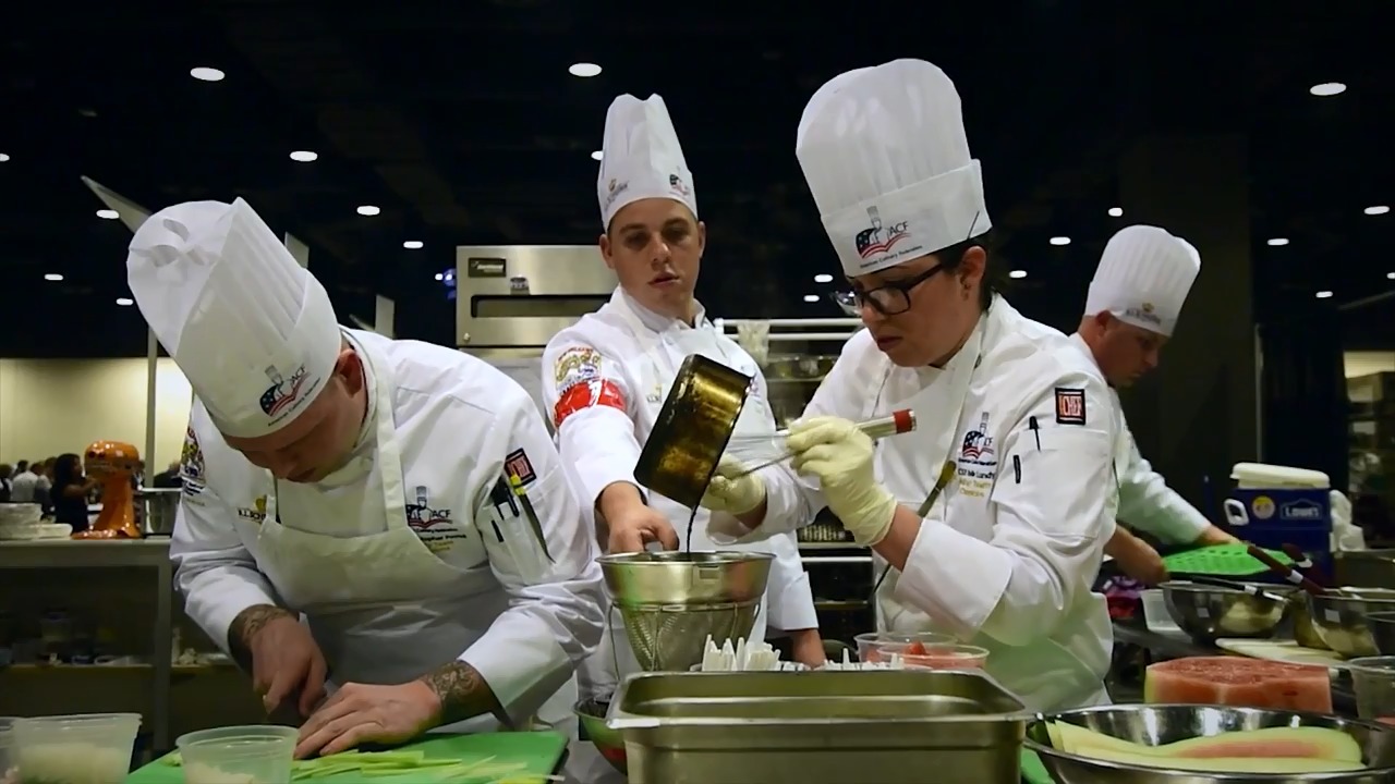 Five U.S. Coast Guard culinary specialists represented the armed forces in the American Culinary Federation Student Team Championships. (Coast Guard)