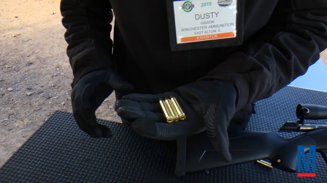 Dusty Gibson with Winchester Ammunition demonstrates their newest ammunition cartridges.