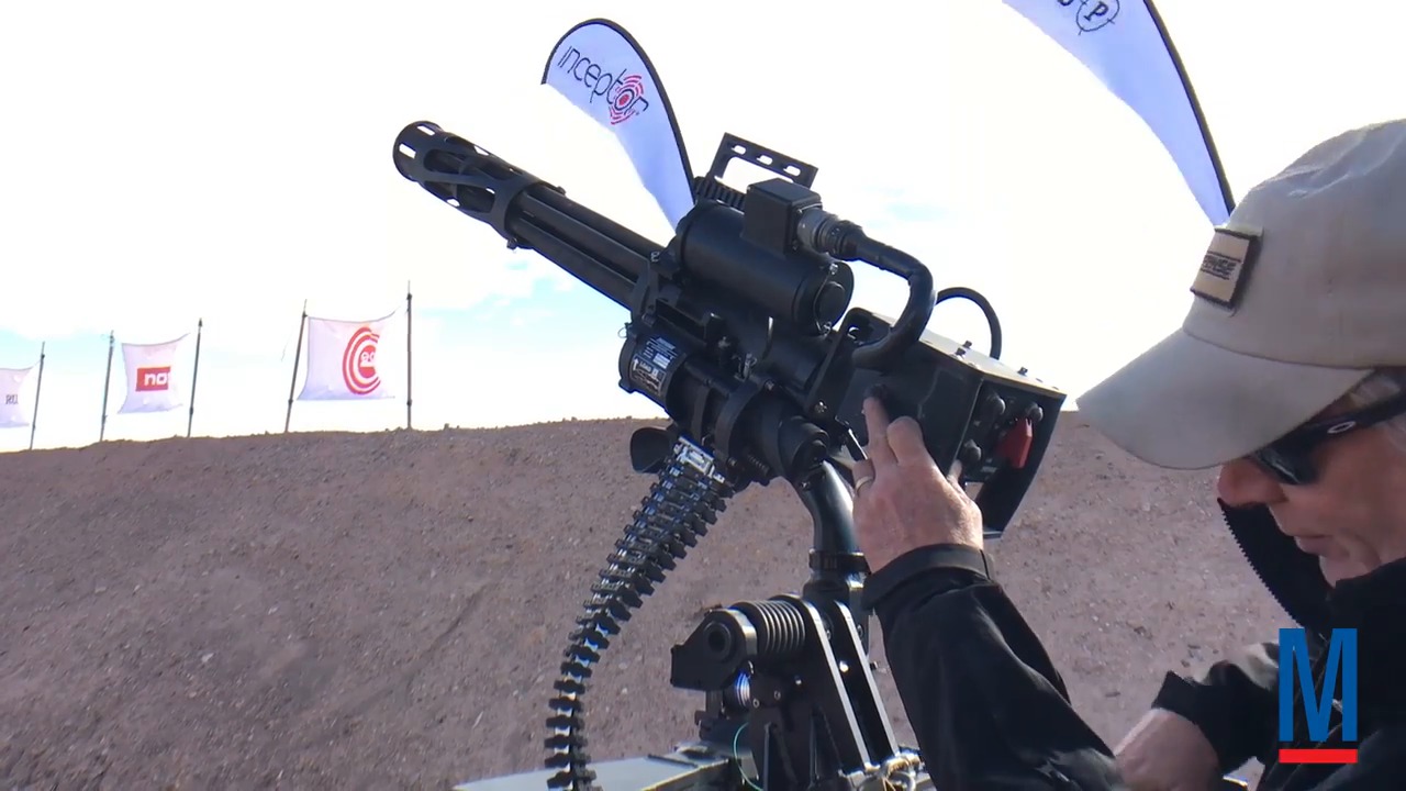 Profense LLC demonstrates their M134 mini gun during Range Day at the 2019 Shot Show.