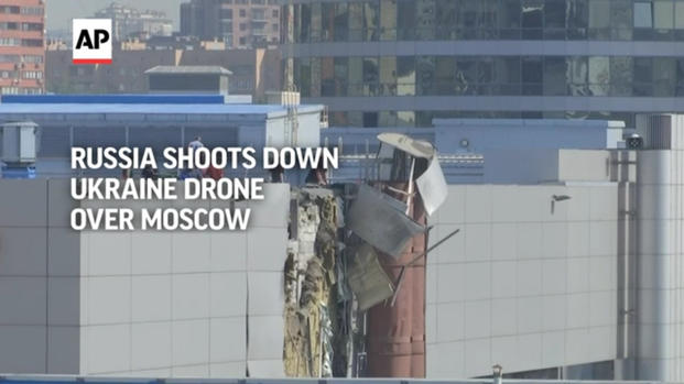 Russian air defenses shot down a Ukrainian drone over central Moscow early Friday and some fragments fell on an exposition center, officials said. (Aug. 18) AP