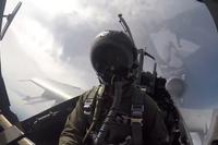 Aerial footage from inside the cockpit of the A-10 Thunderbolt II Demonstration Team jet flying over Cocoa Beach during the
