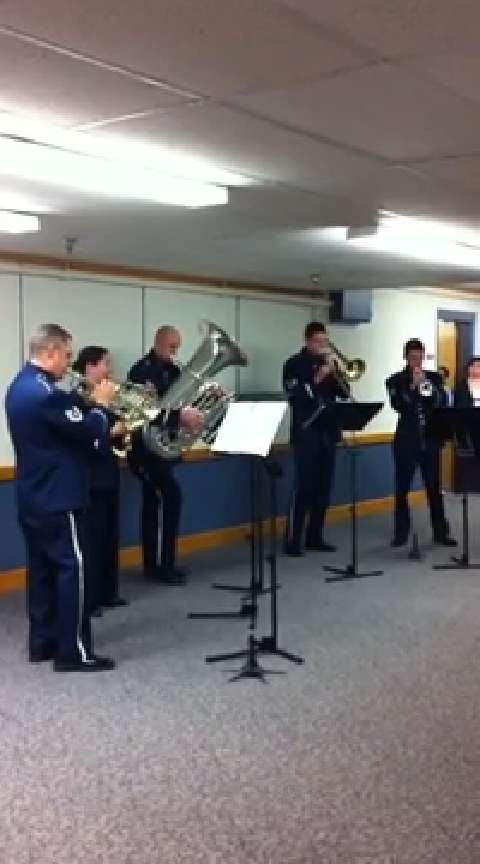 USAF Band of Flight -- 6 piece band doing an inpromptu Christmas concert in the hallways of AFMC headquarters. Big