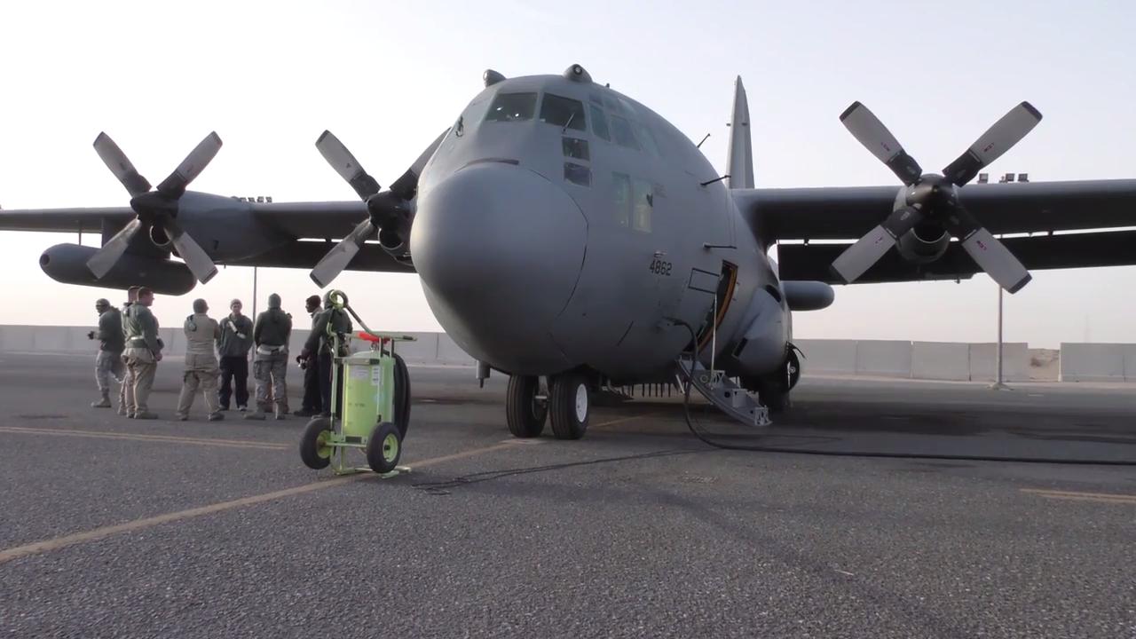 EC-130H Compass Call targets Da'esh through electronic attack. If the enemy can't talk they can't fight.