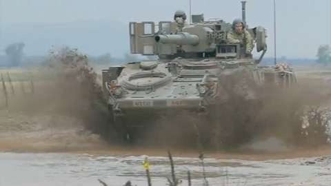 This video shows the Stryker armored vehicle and the T-72 in slo-mo action, just because everything looks better in slow