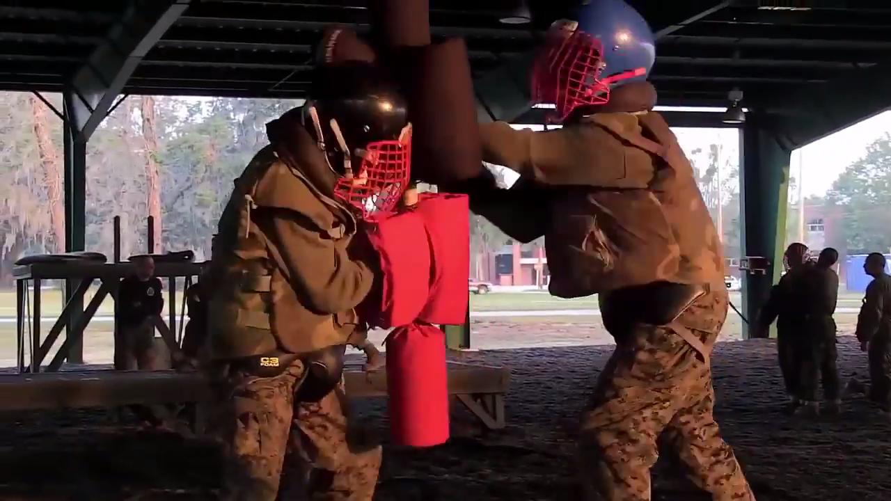 U.S. Marine Corps recruits conduct pugil stick bouts at Marine Corps Recruit Depot Parris Island, SC on November 15, 2016