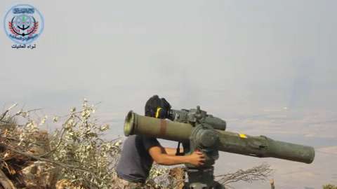 Syrian Rebels fired an anti-tank missile at a Syrian Army troop transport vehicle.